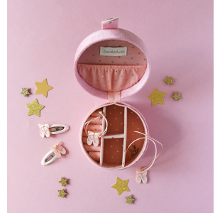 Som prikken over i’et tilbyder vi også et yndigt smykkeskrin i sart rosa med små balletsko på låget fra Rockahula.